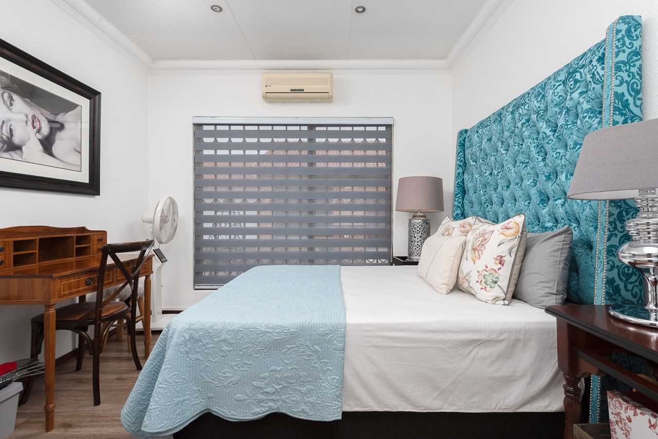 - 3 bedrooms: Main bedroom – roll down blinds, built in cupboards, sliding out to a covered patio. 2 guest bedrooms have built in cupboards and wood floors and blinds.